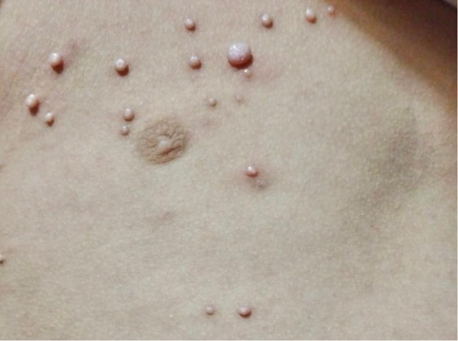 Lésion élémentaire : Papules hémisphériques (1 à 5 mm) de diamètre ou Nodules (6-10 mm ) de diamètre.